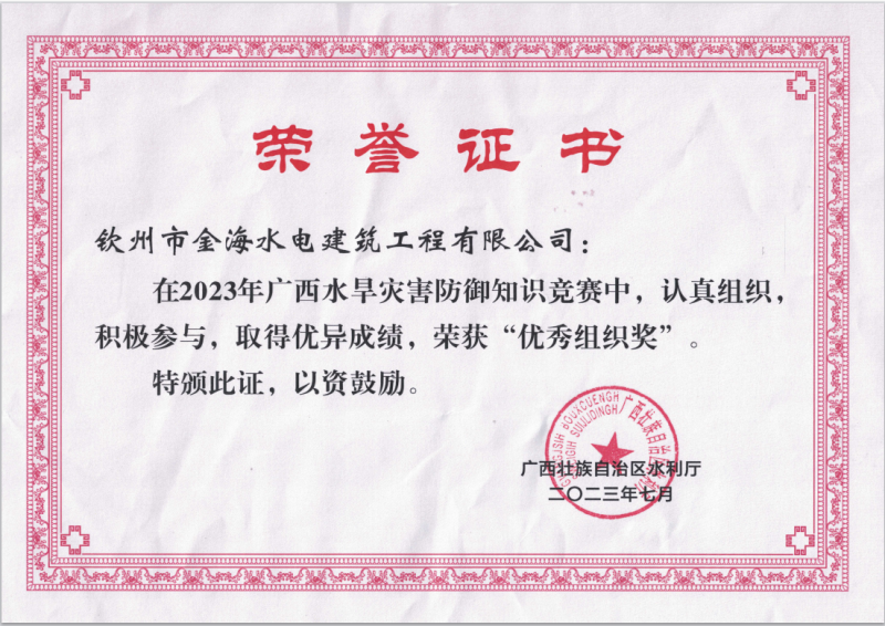 荣誉证书(优秀组织奖)